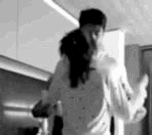 Tj Watt gives a woman a piggyback ride in a blurry, black and white moment.