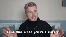 Tom Harlock shares a relatable and humorous thought: 'Time flies when you're a misery'.