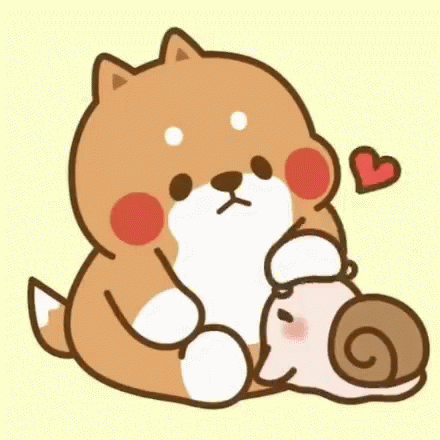 Cute Tonton Yuta, a Shiba Inu, gently interacting with a snail.