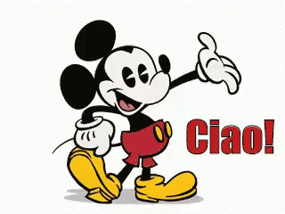Mickey Mouse, known as Topolino, waves and says 'Ciao!' in this animated clip.
