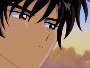 Touya Kinomoto from Cardcaptor Sakura gives a serious side eye reaction, looking intently with a thoughtful expression.