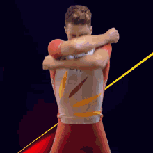Damien Touze, a Cofidis cyclist, shows off his strength and power in his team jersey.