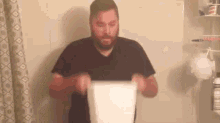 Travis takes on the Ice Bucket Challenge, pouring a bucket of ice water over his head in a bathroom.