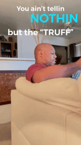 Larry Farley, also known as efaley, sits on a couch, pointing as text overlay reads: "You ain't tellin NOTHIN but the TRUFF".