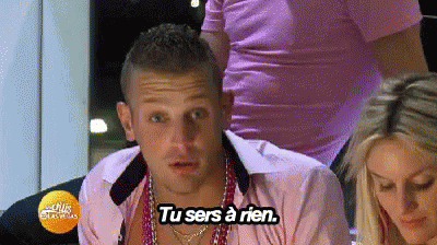 Man in pink shirt tells someone 'You're useless' in a direct and confrontational manner.