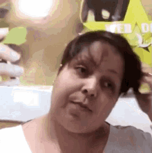 Raeswae playfully holds her 'Tulla Hair' while making a funny face, looking directly at the camera.