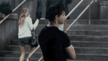 Jacob Black (Taylor Lautner) turns and looks back, arms crossed, on a set of steps from the Twilight series.