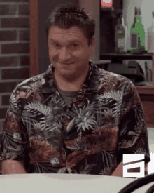 Levani from Tvshow Didiojakhi, looking confused in a Hawaiian shirt at a bar.