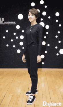 Chaeyoung from the K-pop group Twice performs a dance, possibly to their song "Likey," in a studio setting.