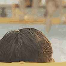 Soobin of Txt emerges from a swimming pool with wet hair, looking at the camera.