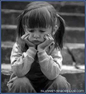 A sad girl sits on stairs with her hands on her chin, looking thoughtful.