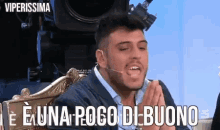 Luigi Mastroianni reacting with the phrase 'È una poco di buono' on a TV show, labeled 'Viperissima'.