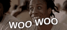 Uzo Aduba, known for OITNB, smiles enthusiastically as the words 'Woo Woo' appear on screen.