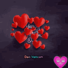 Animated greeting card with red hearts and 'Happy Valentine's Day' text on a dark background.