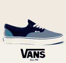 Classic blue and white Vans Era sneaker with white laces and the iconic Vans logo.