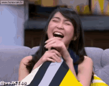 Jessica Veranda (Ve) from JKT48 laughing heartily, showing her joyful and funny side.