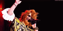 KAMIJO, vocalist of Versailles, performs live in an elaborate gold and black military-style jacket.