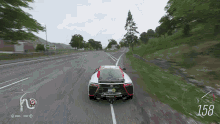 A sports car in a video game performs an incredible mid-air flip and lands perfectly to continue racing.