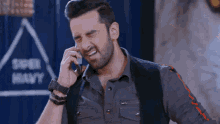 Vishalvashishtha as Kabir talks intensely on a cell phone, expressing strong emotions.