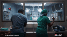 Dr. Floyd Reynolds and another doctor in an operating room, from the show New Amsterdam.