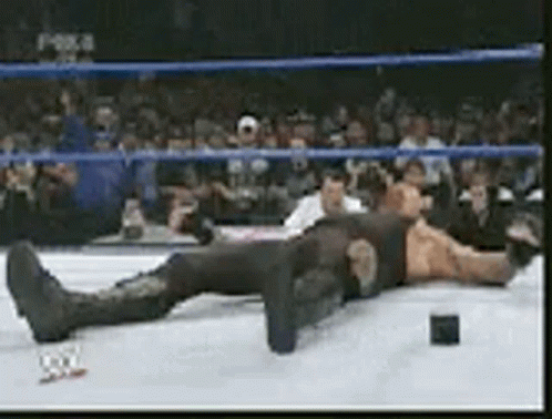 The Undertaker, a WWE legend, slowly sits up in the wrestling ring, giving a furious and menacing look.