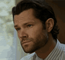 Jared Padalecki as Cordell Walker from the series Walker, smiles subtly in a close-up shot.