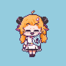 Tsunomaki Watame, the Hololive VTuber, animated in a cute pixel art style, blinking and smiling.