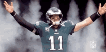 Carson Wentz, quarterback for the Philadelphia Eagles, makes a dramatic entrance onto the field.