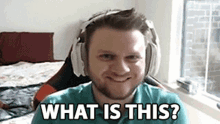 Ryan Bailey, wearing headphones, reacts with a confused and smiling 'What Is This?' expression.