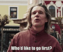 Ethan Hawke as Arthur Harrow asks, 'Who'd like to go first?' in a scene from Marvel's Moon Knight.