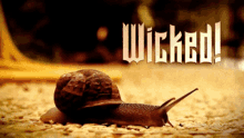 A snail slowly crawls across the ground with the word 'Wicked!' displayed above it.