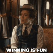 Louise Cherry (Bea Santos) from Murdoch Mysteries, wearing a hat and vest, with the caption 'Winning Is Fun'.