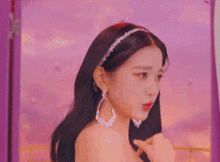 Jang Wonyoung, a K-pop idol, poses elegantly with a sparkling headband and earrings.