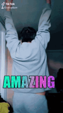 A man reacts with an exaggerated, surprised expression, with the word 'AMAZING' displayed on screen.