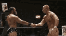 Wrestlers, including Mist, engage in a match, shaking hands, kicking, and celebrating victory in the ring.