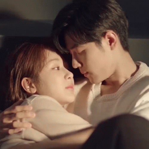 Xiao Zhan shares a tender, intimate kiss with a woman in a romantic embrace.