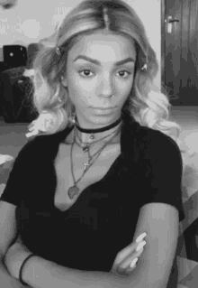 Xoxo Bru Well takes a smiling selfie video, wearing a black top and a stylish choker necklace.
