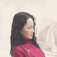 Xu Xinwen, wearing a red shirt, looks up then drops her head back, appearing utterly exhausted and drained.