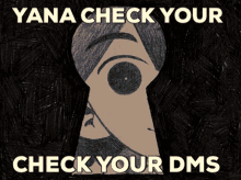 Yana looking through a keyhole, with the text 'YANA CHECK YOUR DMS'. From the world of Omori.