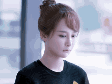 Yang Zi eating a snack with a smile, told to eat slowly.