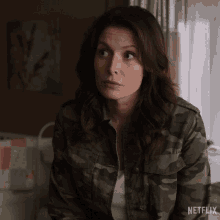 Charmaine Roberts (Lauren Hammersley) in a camo jacket says 'Yeah' in a scene from Virgin River.