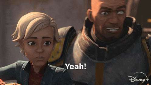 Wrecker and Omega from Star Wars: The Bad Batch are excited, with Wrecker exclaiming 'Yeah!'