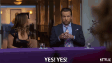 Debby Ryan and Dallas Roberts react enthusiastically with 'Yes! Yes!' in a scene from Netflix's Insatiable.