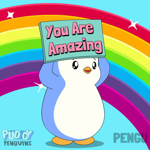 a penguin with a sign that says you are amazing