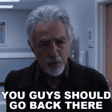 David Rossi, portrayed by Joe Mantegna, delivers the line 'You Guys Should Go Back There' in a dramatic scene.