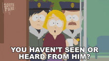 Linda Stotch asks if anyone has seen or heard from someone, flanked by two police officers.
