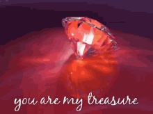 A beautiful, sparkling diamond rotates on a reflective surface with the text 'you are my treasure' displayed.
