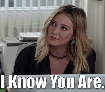 Hilary Duff as Kelsey Peters from Younger TV show delivers a knowing 'I Know You Are' line with a thoughtful expression.