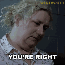 Elizabeth Birdsworth (Celia Ireland) from Wentworth acknowledges with 'You're Right'.