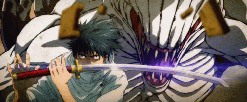Yuta Okkotsu wields his sword with Rika Orimoto, the Queen of Curses, ready for battle.